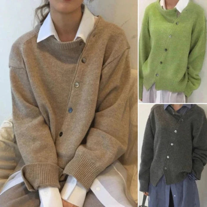 Alice – Klassischer Langarm Pullover Mit Knopf