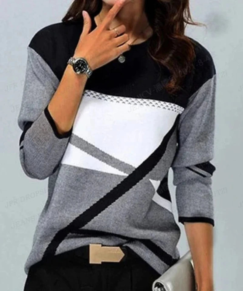 Verbessern Sie Ihren lässigen Look mit diesem einzigartigen langärmligen Oberteil mit einem auffälligen geometrischen Druck in einer harmonischen Mischung aus Stil. Dieses Oberteil wurde für die Tage entworfen, an denen Sie sich nach Einfachheit sehnen, ohne auf Stil zu verzichten, und ist perfekt für die Zusammenstellung eines eleganten und dennoch entspannten Outfits.