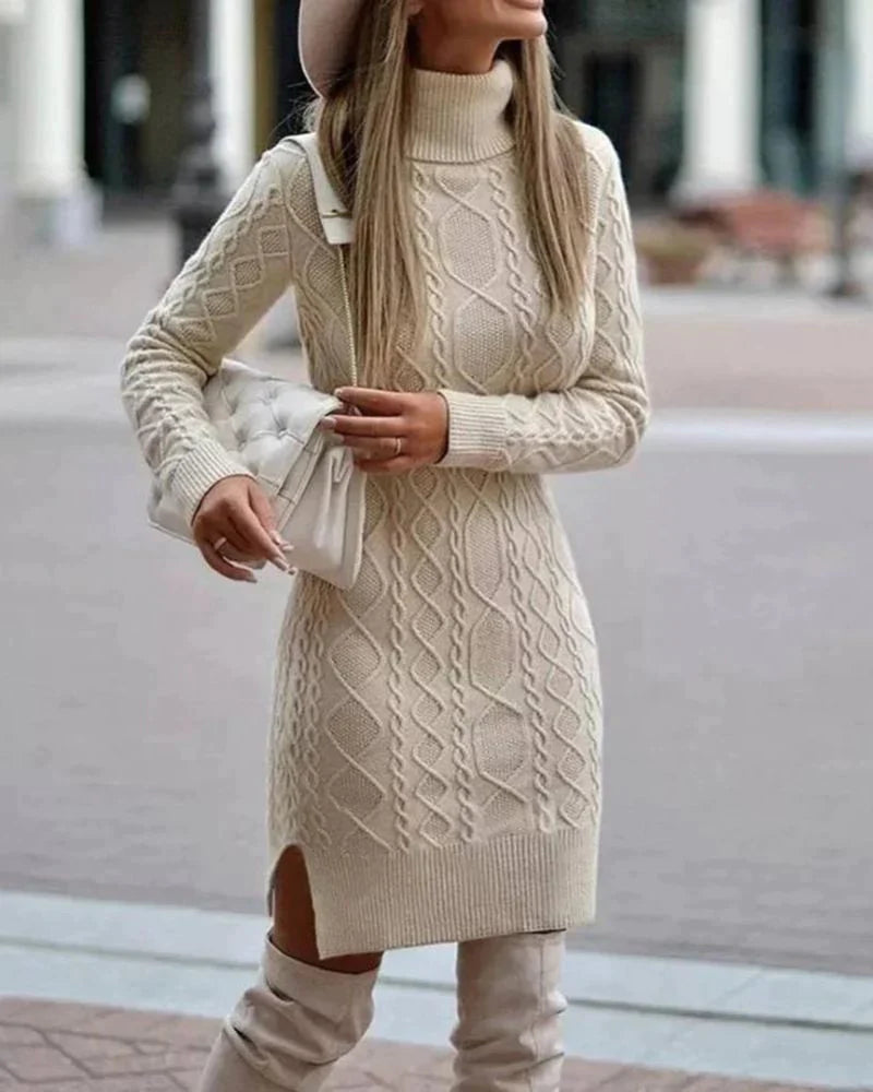 Mila - Bequem Midi Rollkragenpullover Kleid