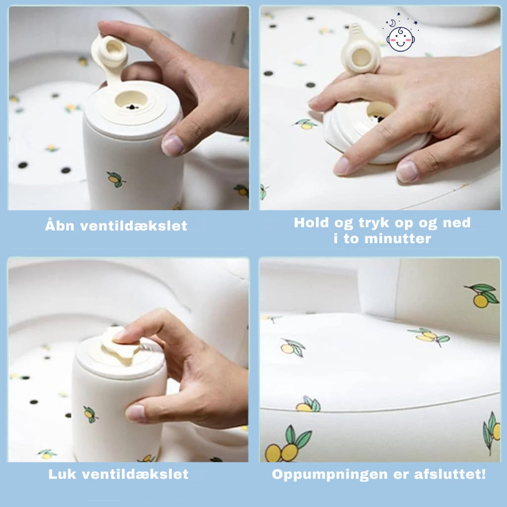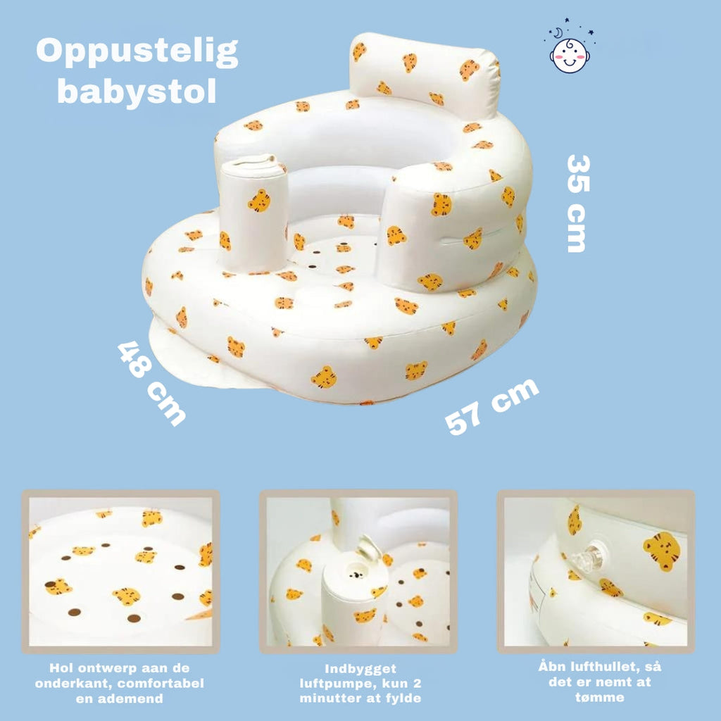 Den oppustelige SafeNest-babystol er en alsidig og praktisk siddeløsning til de små. Denne multifunktionelle stol er designet til babyer over 3 måneder og fungerer som et behageligt sæde til forskellige aktiviteter som f.eks. madning og leg. Dens bioniske design holder din baby sikkert i hånden og efterligner støtten fra en mors arme, samtidig med at den opmuntrer til en korrekt siddestilling. Stolen er også sammenklappelig og let at transportere, hvilket gør den til en god ledsager på udflugter og rejser.