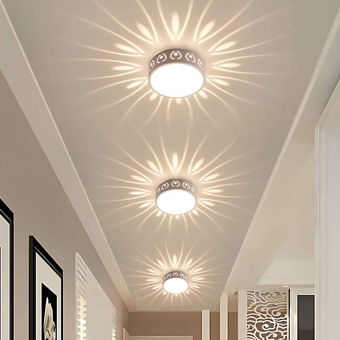 Die LumaGlow LED-Deckenleuchte verleiht Ihrem Wohnraum Eleganz und optische Akzente. Sie beleuchtet den Raum und projiziert sanfte, dekorative Muster an Decke und Wände. Das schafft eine ruhige und einladende Atmosphäre, die Ihren Einrichtungsstil unterstreicht. Die Leuchte eignet sich ideal für Schlafzimmer, Flure oder Wohnzimmer, in denen eine gleichmäßige Helligkeit ohne grelles Blendlicht gewünscht ist. Ihr Design sorgt mit klaren, modernen Linien für eine gemütliche Atmosphäre.