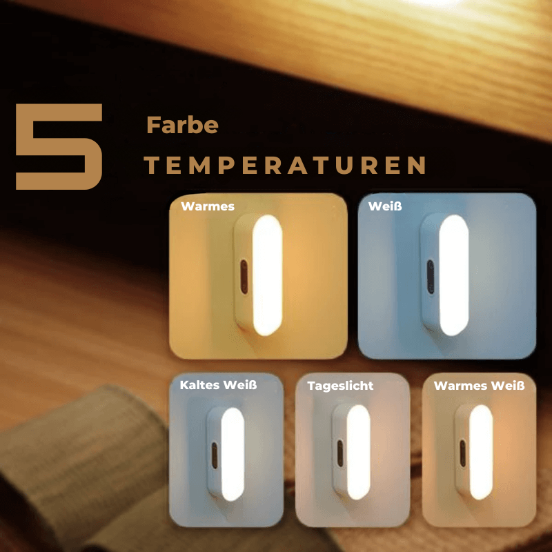 SmartGlo lässt sich überall in Ihrer Wohnung anbringen und wird einfach über USB aufgeladen. Mit fünf Lichteinstellungen, die von warm bis kühl reichen, können Sie die Stimmung in jedem Raum ganz einfach anpassen. Ob über dem Bett, im Flur, im Kleiderschrank oder an der Treppe - die magnetische Befestigung bietet unendlich viele Möglichkeiten. Die Dimmfunktion ermöglicht es Ihnen, die perfekte Lichtstärke einzustellen und eine gemütliche Atmosphäre zu schaffen, während Sie gleichzeitig Energie und Geld sparen.