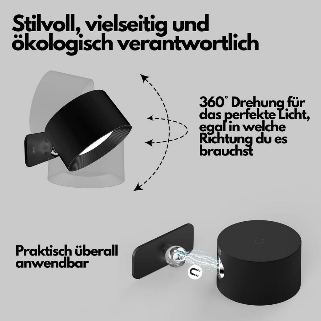 Sparen Sie an Ihren Energiekosten und beleuchten Sie Ihr Zuhause stilvoll mit der vielseitigen Flexilight Pro 360° Wandlampe – keine Steckdose oder Verkabelung notwendig!