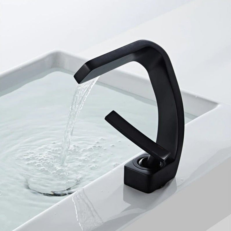 FlowEdge – Gebogene Badezimmerarmatur mit Einzelgriff und klarem Entwerfen