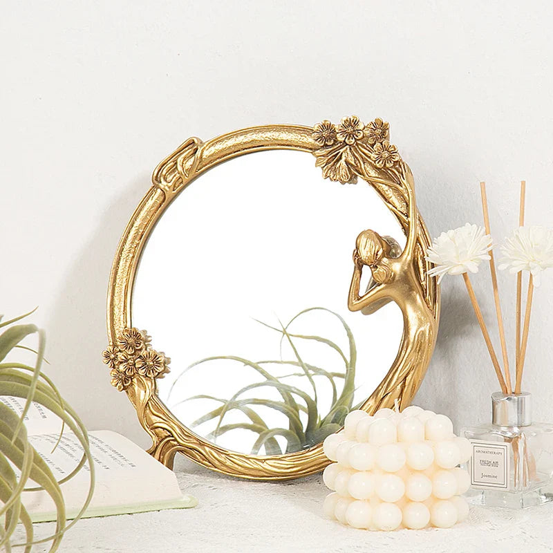FrameGlow verfügt über eine glatte, reflektierende Oberfläche, die von einem geprägten Rahmen eingefasst ist und für eine dezente Struktur und optische Akzente sorgt. Er ist in runder und eckiger Ausführung erhältlich und steht auf flachen Oberflächen wie Schreibtischen, Kommoden und Regalen – perfekt für den täglichen Gebrauch oder als dekoratives Accessoire.