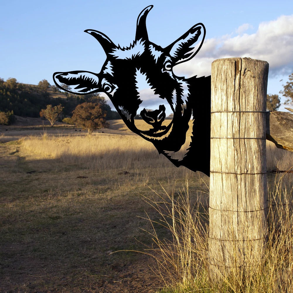 Verleihen Sie Ihrem Haus oder Garten eine charmante Note mit diesem Kunstwerk mit Ziegenblick. Es soll die Illusion einer neugierigen Ziege erwecken, die über Zäune oder Mauern blickt, und wertet sowohl rustikale als auch moderne Einrichtungen auf. Dieses dekorative Stück eignet sich perfekt für Gärten, Terrassen oder Innenräume und verleiht jeder Umgebung Persönlichkeit und Wärme.