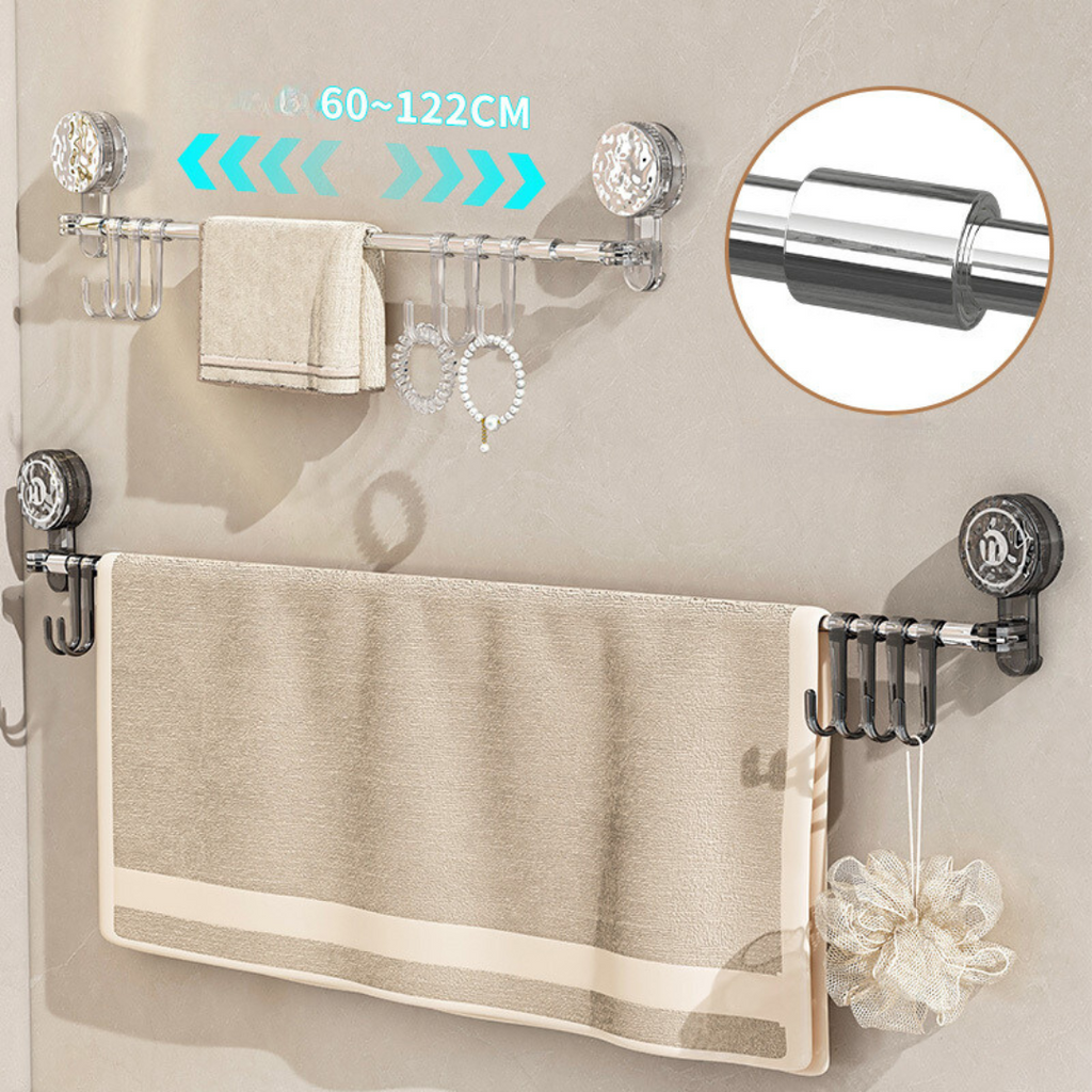 Verwandeln Sie Ihr Zuhause mit der SpaceSleek-Wandhalterung, die Platz spart und für Ordnung sorgt. Dieser vielseitige und ausziehbare Handtuchhalter ist perfekt für kleine Wohnungen oder Räume mit begrenztem Platz. Das schlanke Design und die verstellbaren Haken machen ihn zu einer praktischen Ergänzung für jedes Badezimmer, jede Küche oder jedes Schlafzimmer und sorgen dafür, dass Ihre wichtigsten Dinge immer in Reichweite sind.
