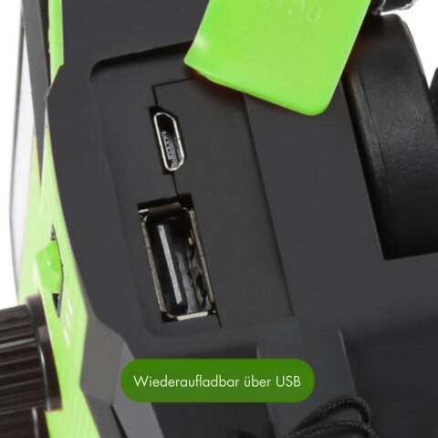Mit TerraVolt haben Sie mehrere Lademöglichkeiten, darunter Solarenergie, eine Handkurbel und ein USB-Kabel. Es kann alle Ihre USB-Geräte mit Strom versorgen und gleichzeitig über Funk kommunizieren, damit Sie immer in Verbindung bleiben. Es ist ideal für Notfälle und sorgt dafür, dass Ihnen nie der Strom ausgeht, egal wo Sie sind.